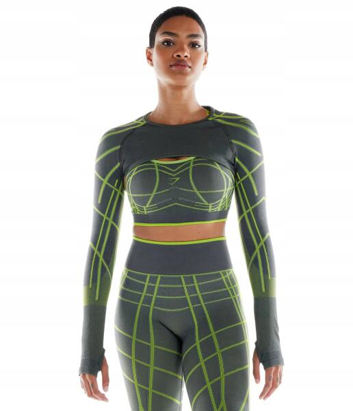 Gymshark szürke-zöld hosszú ujjú rövid felső méret méret (B4A1J-GBMZ-M-BN1)